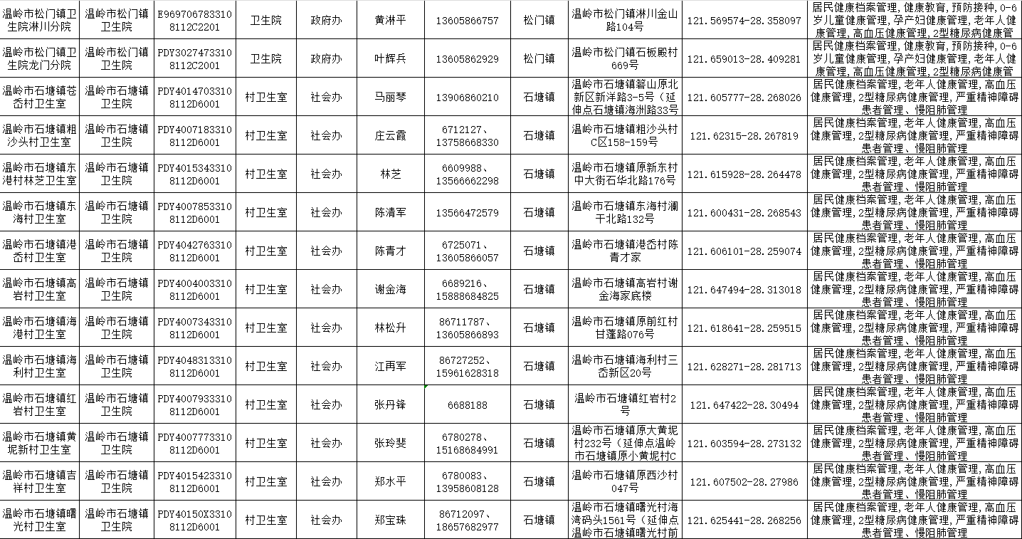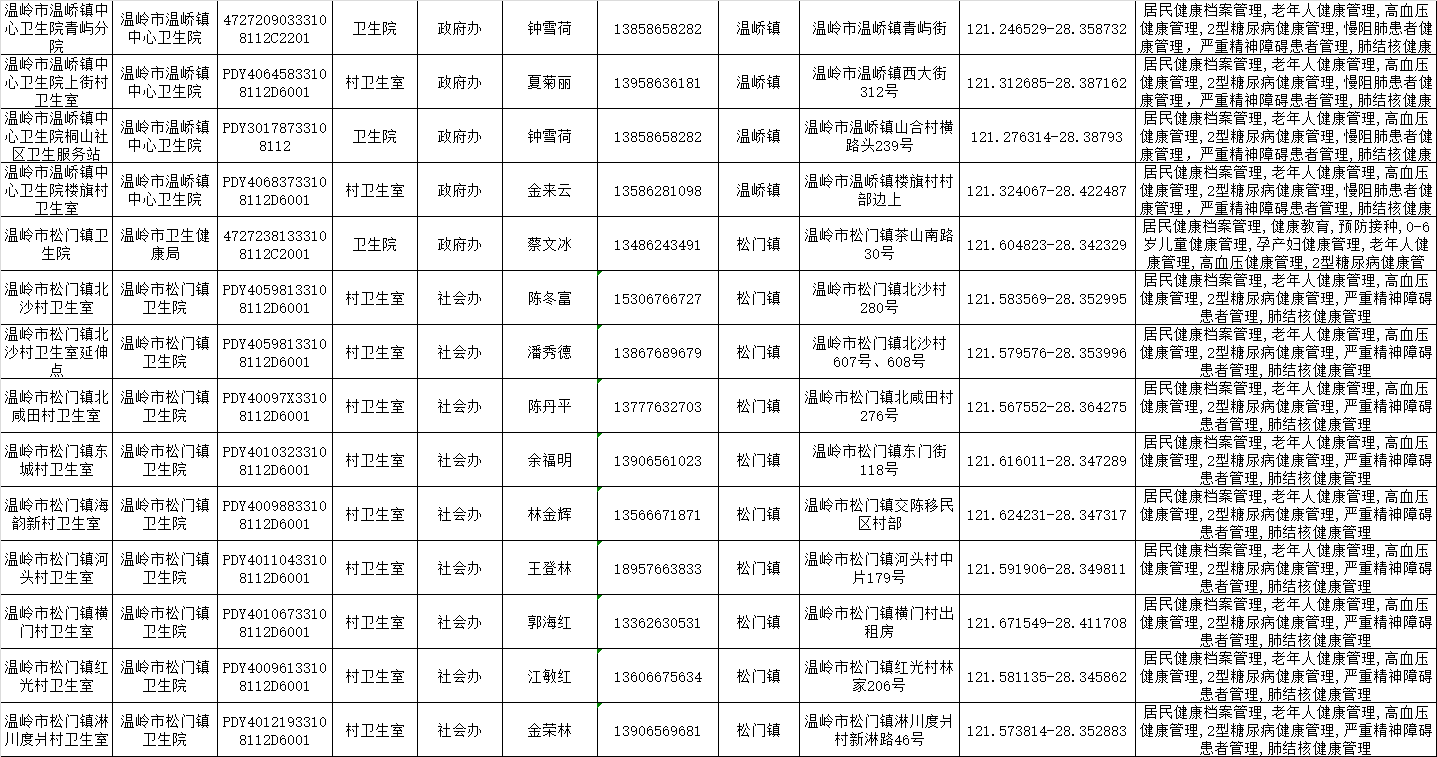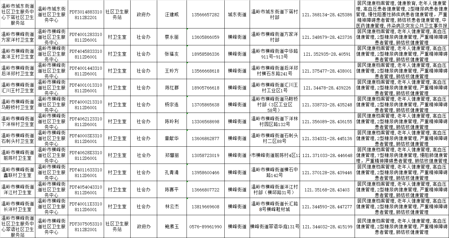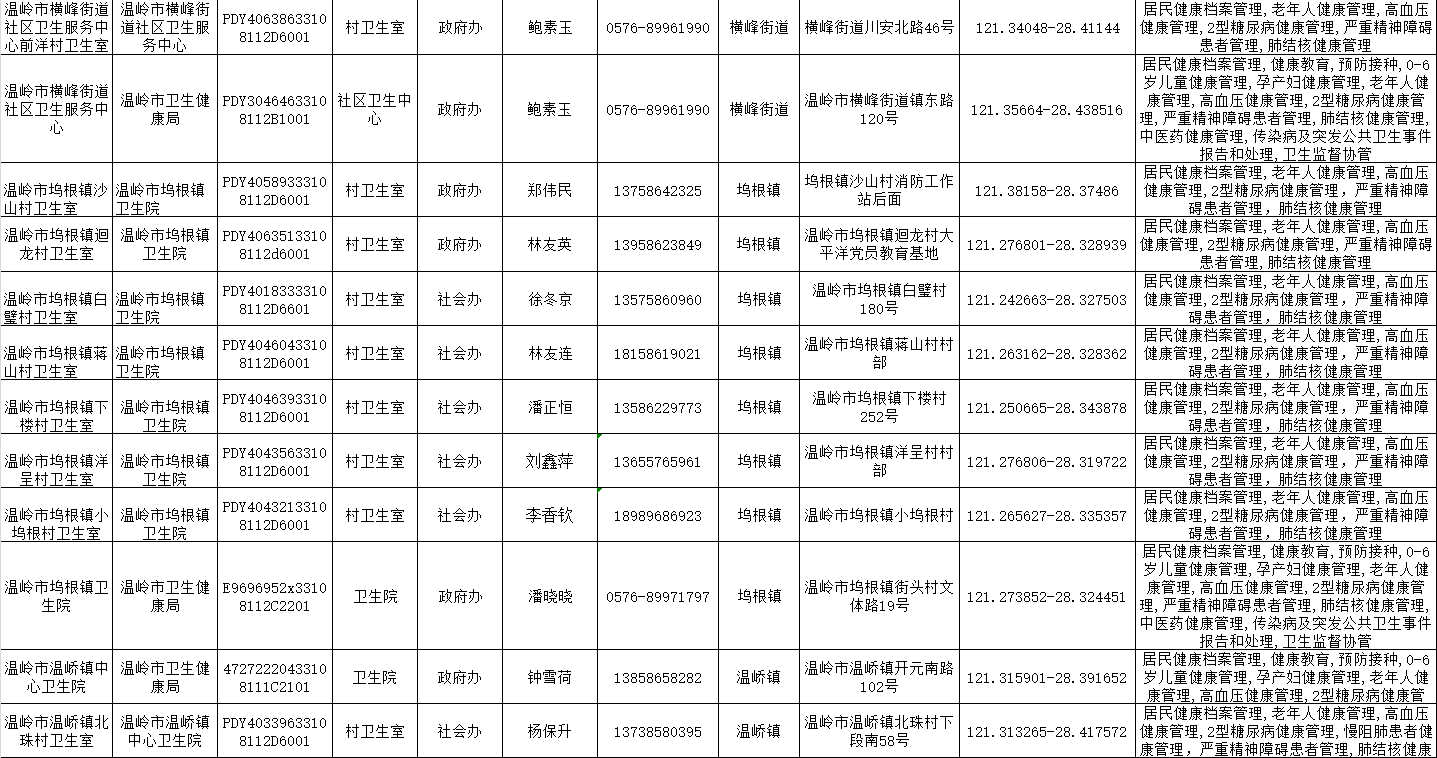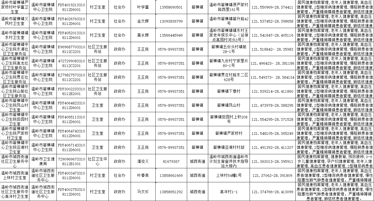 温岭一院医共体基本公共卫生服务项目承担医疗机构信息公示表(2025年)