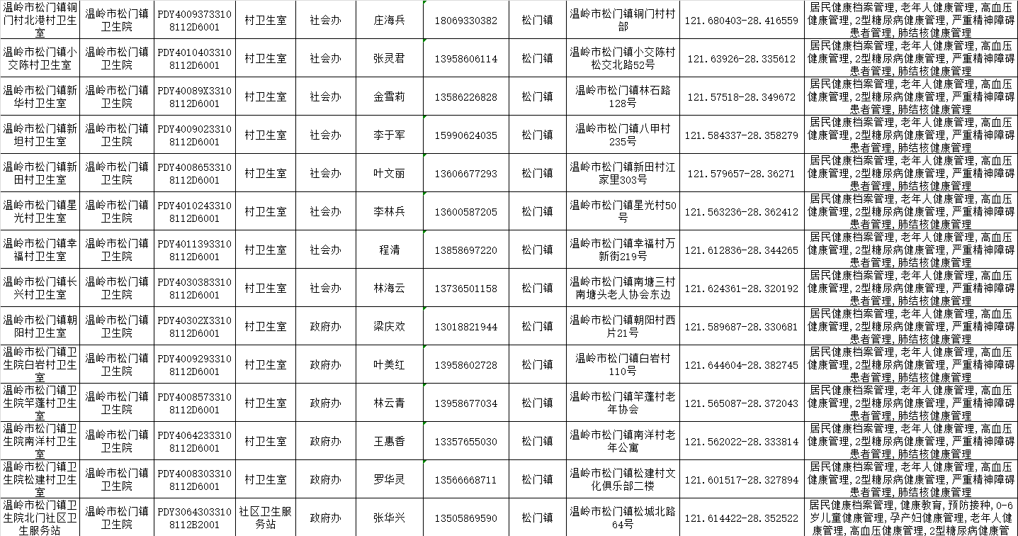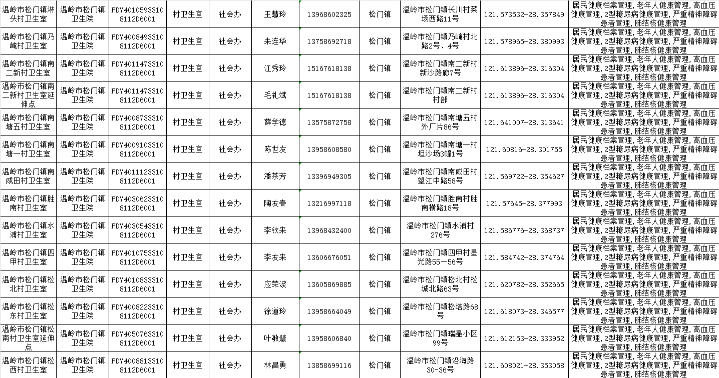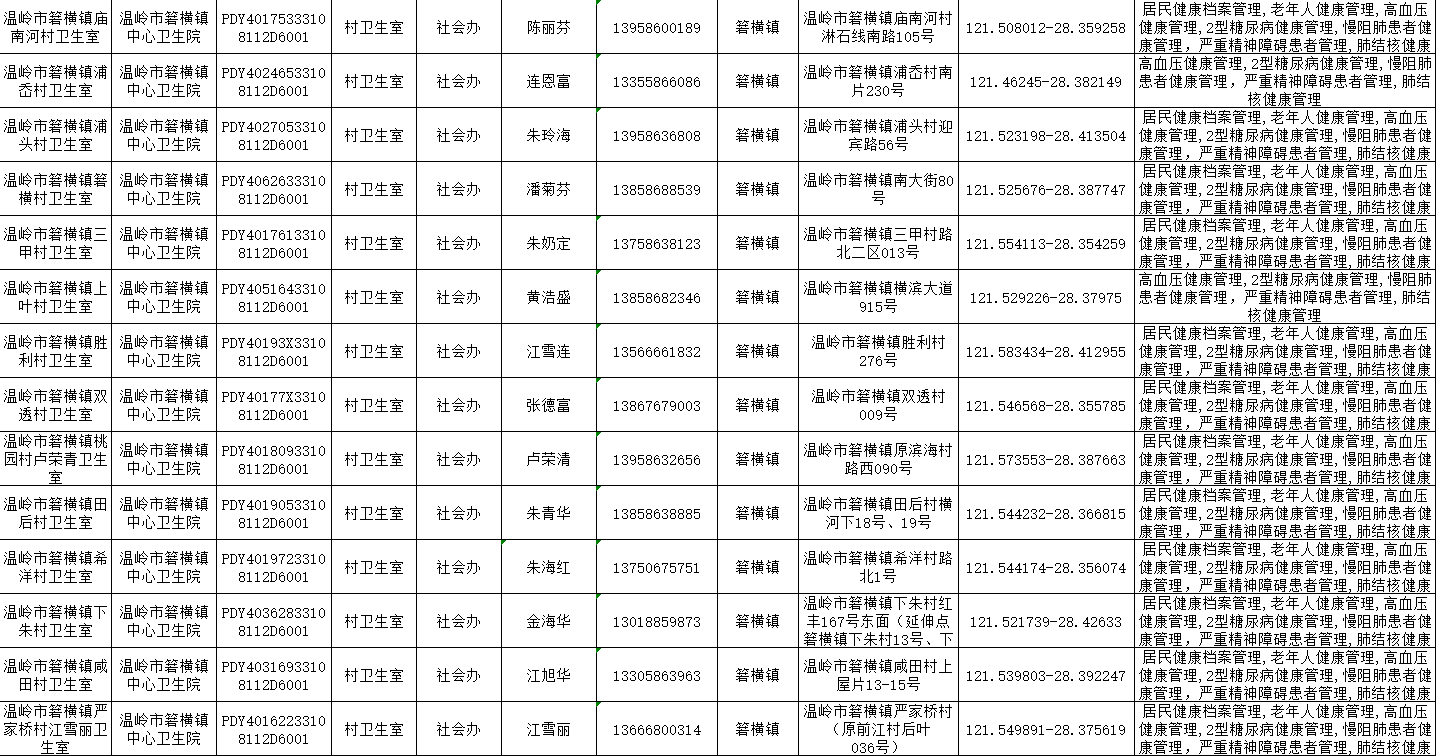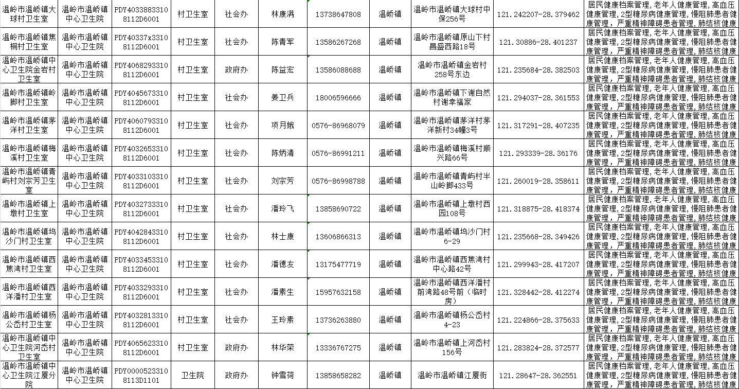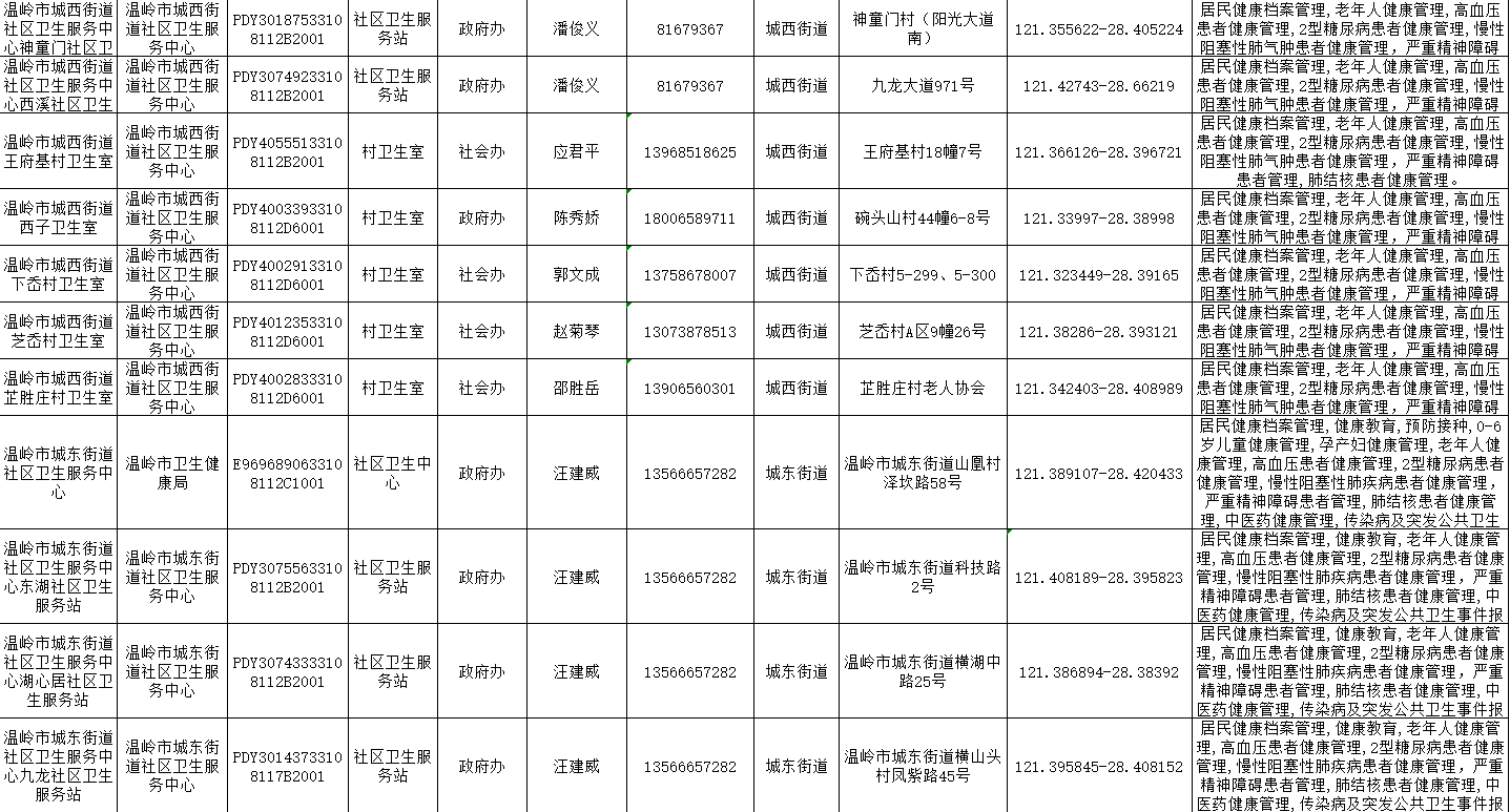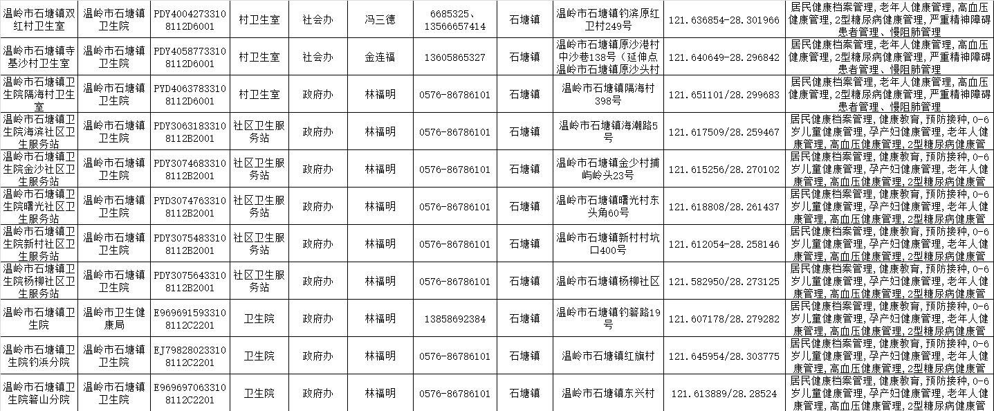 温岭一院医共体基本公共卫生服务项目承担医疗机构信息公示表(2025年)