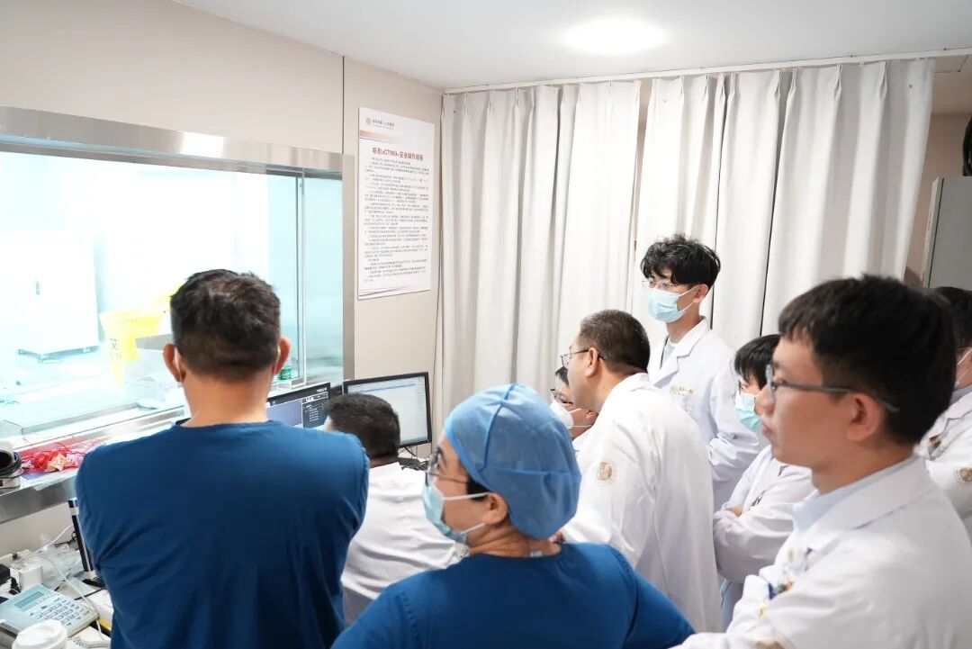 14时34分,患者顺利抵达急诊抢救室。等候多时的医护团队立刻上前,快速评估病情、维持生命体征、抽血化验并联系备血,一系列急救措施有条不紊。