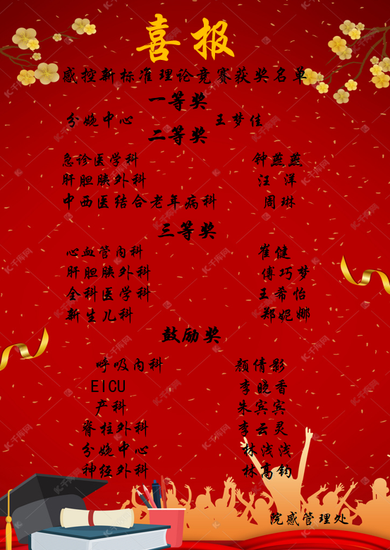 本次活动围绕“理论+视觉”双轨并行的创新形式 感控新标准理论比赛与“一图看懂”院感新标准图解设计比赛 理论比赛以闭卷笔试形式开展,内容全面覆盖14项新标准的核心要点,面向全院临床、医技、护理人员。各科室选派代表参赛,通过A、B卷考核,检验医务人员对新标准的掌握程度。比赛设有一、二、三等奖及优秀奖,并给予相应奖励,营造“比学赶超”的良好氛围。 为进一步增强标准的可读性与传播力,院感管理处同步启动“一图看懂”院感新标准图解设计比赛。参赛者围绕14项新标准中的任一主题,以海报、长图、信息图等形式进行视觉化创作,力求内容准确、形式新颖、通俗易懂。 本次院感宣传月通过“理论考核+视觉表达”的双重机制落实新标准专项学习,不仅强化了医务人员对新标准的理解与记忆,更激发了大家主动学习、主动宣传的积极性。活动既是对专业能力的检验,也是对医院感染防控文化的深化,为构建更加科学、规范、高效的院感防控体系奠定了坚实基础。 医院将以此次活动为契机,持续推动感染防控工作的制度化、标准化与人文化,切实保障医患安全,提升医疗质量,筑牢医院感染控制的“第一道防线”。