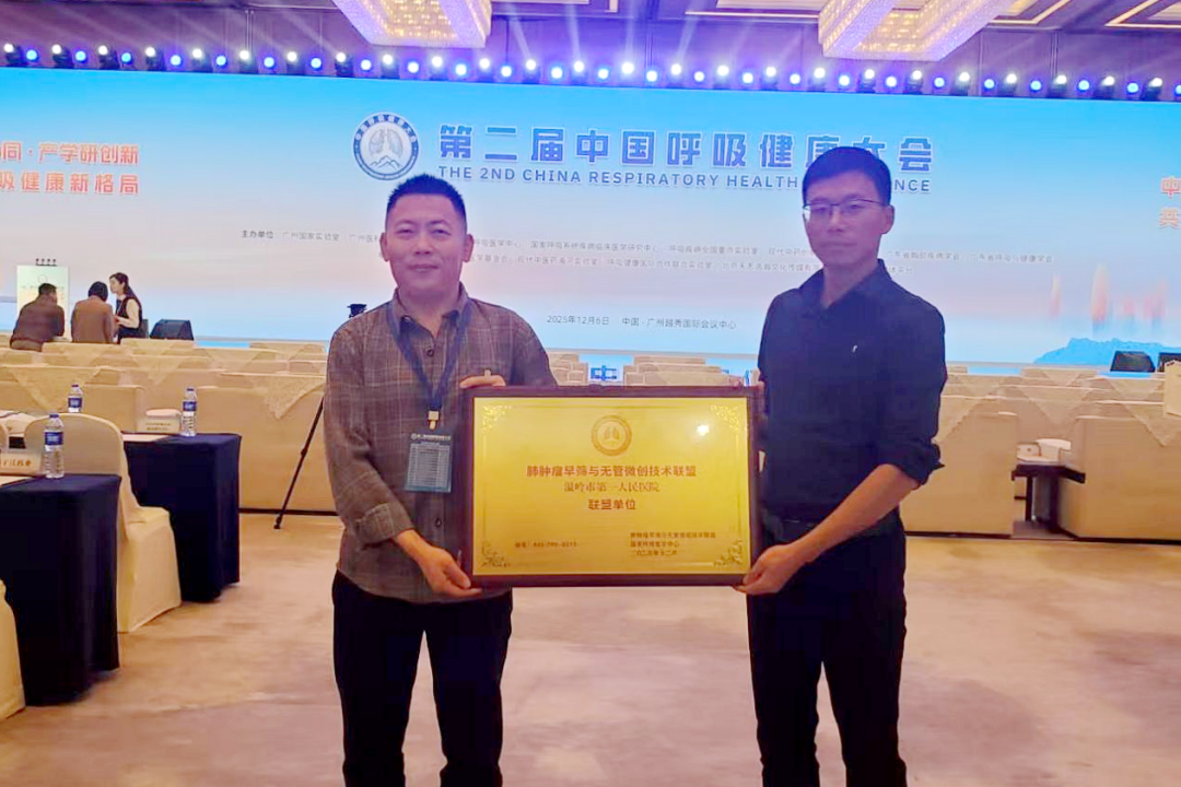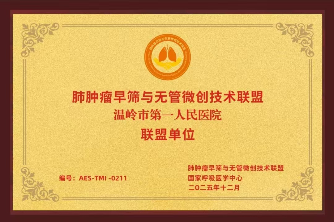 李女士的顺利康复,正是温岭市第一人民医院在肺肿瘤早筛与无管微创技术领域发展的缩影。作为台州地区较早开展胸外科无管微创手术的单位之一,该院心胸外科联合麻醉科、放射科、呼吸与危重症医学科和手术室等相关学科,积极探索胸部手术无管微创技术,已成功完成多例非气管插管保留自主呼吸全麻经胸腔镜肺、纵隔手术。 就在12月6日广州举行的第二届中国呼吸健康大会上,温岭市第一人民医院正式成为“肺肿瘤早筛与无管微创技术联盟”成员单位,张波和叶仙华医师代表医院参加了授牌仪式。 据悉,该联盟由广州医科大学附属第一医院和国家呼吸医学中心共同发起,以钟南山院士、张伯礼院士等专家团队为技术指导,是聚焦肺肿瘤早筛技术与无管微创技术推广的国家级平台。其核心目标是推进胸部疾病筛查、诊疗的规范化和同质化,提高肺癌早期发现率,降低手术创伤和并发症。而无管微创技术由国家呼吸医学中心何建行教授团队首创并推广。 此次成功加入国家级技术联盟,既是对温岭市第一人民医院在呼吸医学领域技术实力的肯定,也为台州地区患者带来了福音。未来,医院将依托联盟平台优势,进一步加强与国家呼吸医学中心的交流合作,整合学科技术资源,持续推进肺肿瘤早筛和无管微创技术的普及与优化,让更多像李女士这样的患者受益于“舒适化医疗和快速康复”的诊疗服务,为台州及周边地区群众的呼吸健康保驾护航。