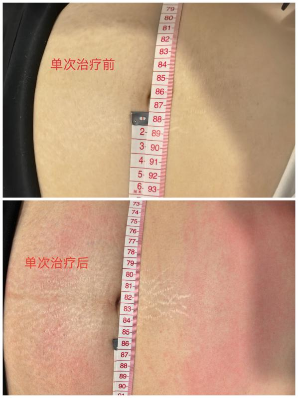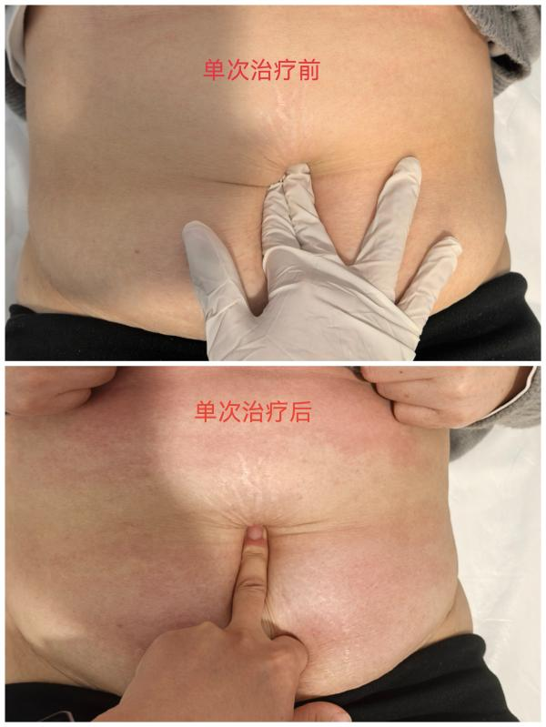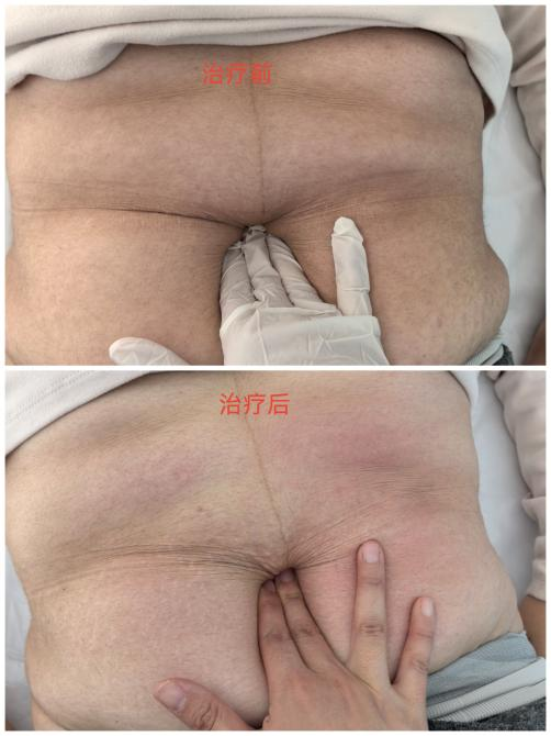 产后四年的林女士,一次手法治疗前后的效果对比
